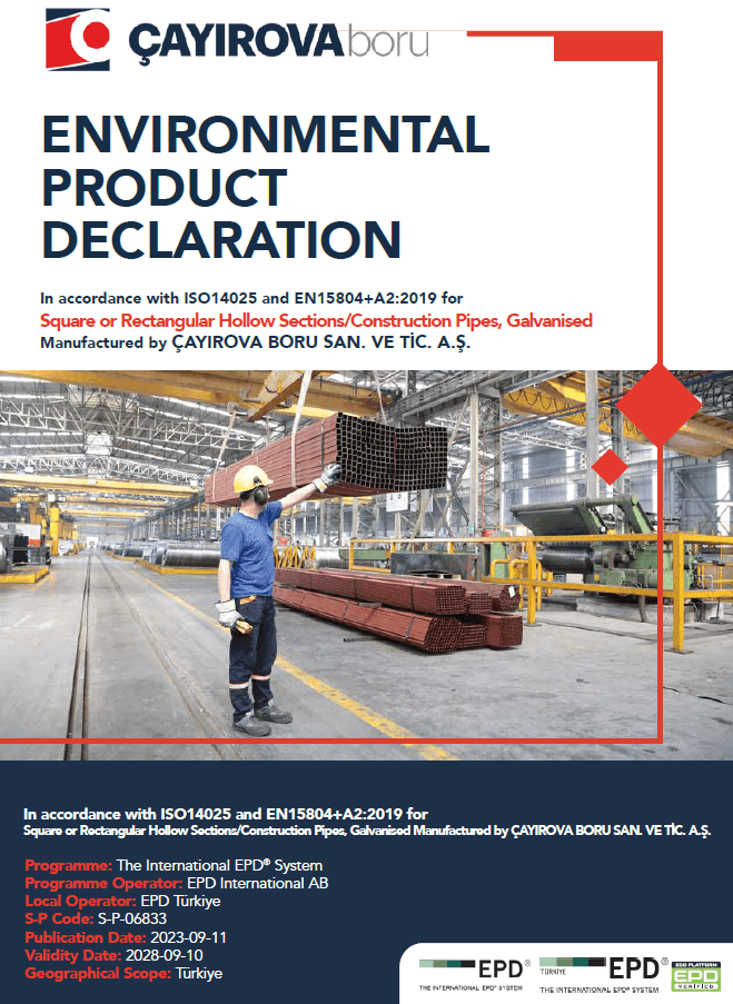 Çayırova manufactures and sales (ERW, from Ø17mm to Ø325 mm) of oil pipes, natural gas pipes, water pipes, boiler pipes, general purpose pipes and construction profiles by employing state-of-the-art technology and realizes foreign trade, custom clearance, management and administrative organization activities with its experienced and trained staff. It offers a wide product range with protective coating applications such as Galvanize Coating, Polyethylene/Polypropylene Coating, Internal Epoxy Coating, External FBE and Varnish. Having Quality and Production Management Systems certified by internationally reputable inspection bodies, Çayırova exports a significant part of its products to more than 30 countries and continues to contribute to Turkish industry and export. Adopting environment-friendly production methods with the responsibility assumed as being among leading companies of Turkish Pipe sector, Çayırova aims to carry the success acquired through being customer oriented and adopting innovative production understanding.